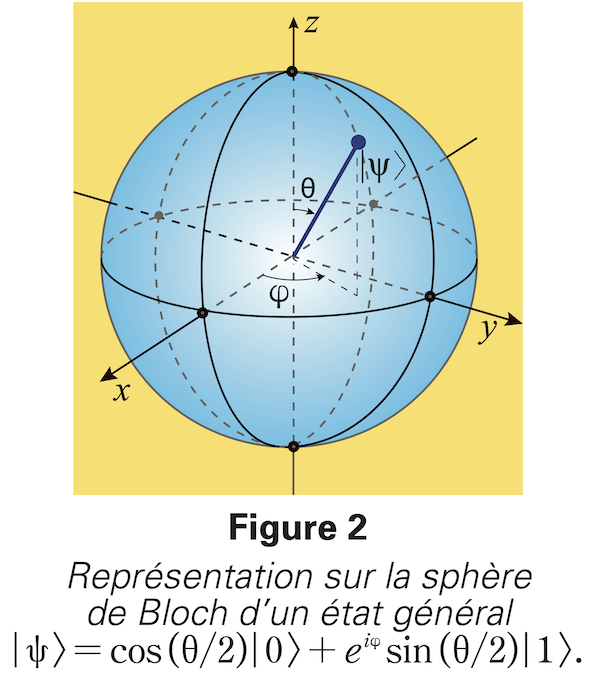 Puisque \(r, s \geq 0\) et \(s^2 + r^2 = 1,\) on peut écrire \(s=\cos(\theta/2)\) et \(r = \sin(\theta/2) \) où \(\theta \in [0, \pi].\) Un état général