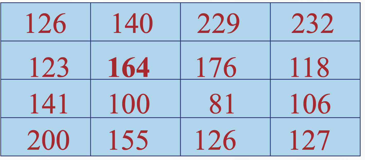Les tons de gris sont donnés dans le tableau (en caractères gras notre carré \( 2 \times 2 \) )