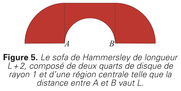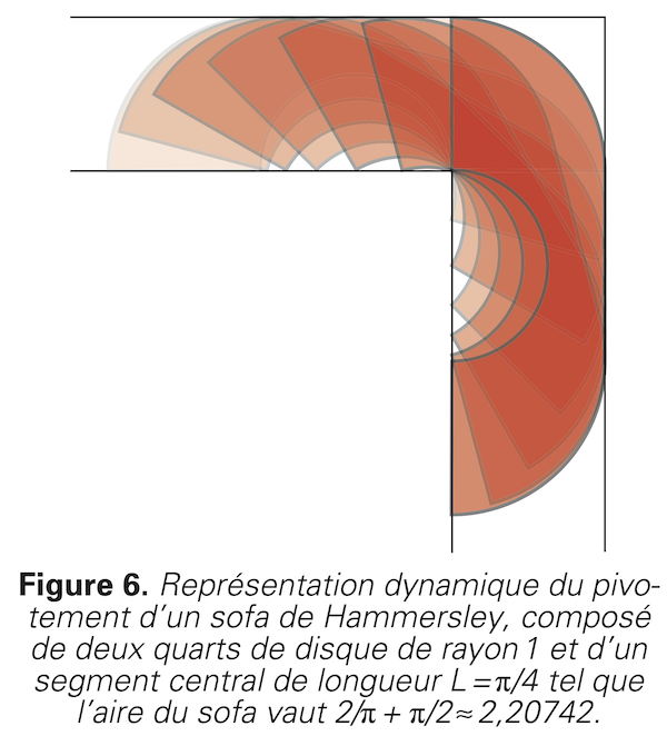 Peut-on faire encore mieux ? Il se trouve que oui, comme le mathématicien britannique John Hammersley l’a montré dès 1968 en proposant un sofa d’aire \(A = 2,2074 \text{ m}^2.\)