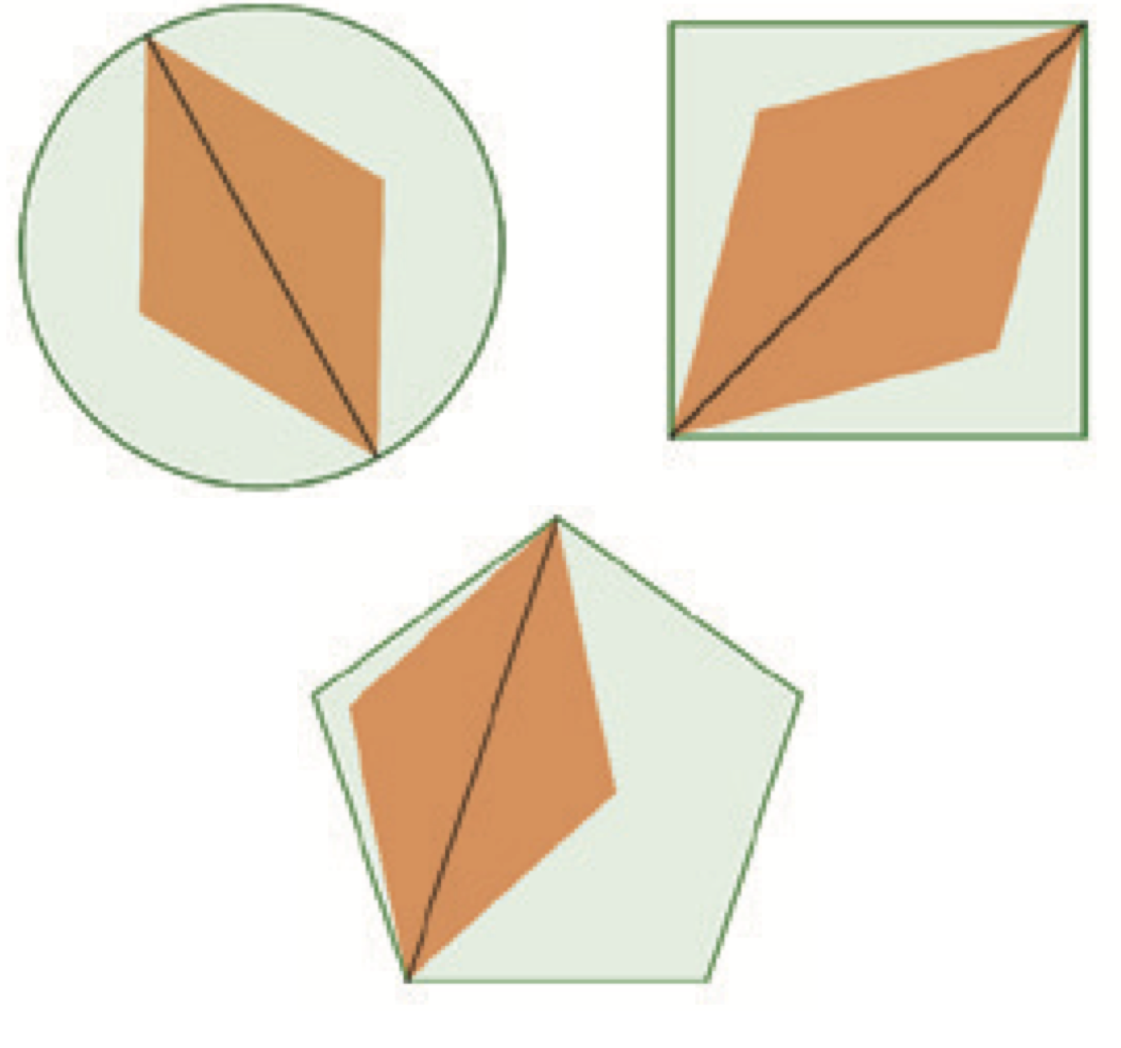 On peut démontrer que toutes les forêts en forme de polygone régulier (à l’exception du triangle) sont des grosses forêts, donc le chemin d’évasion pour toutes ces formes est une ligne droite.