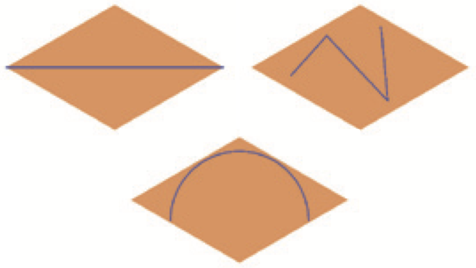 Voici des exemples de chemins de longueur égale à la grande diagonale inclus dans le losange.