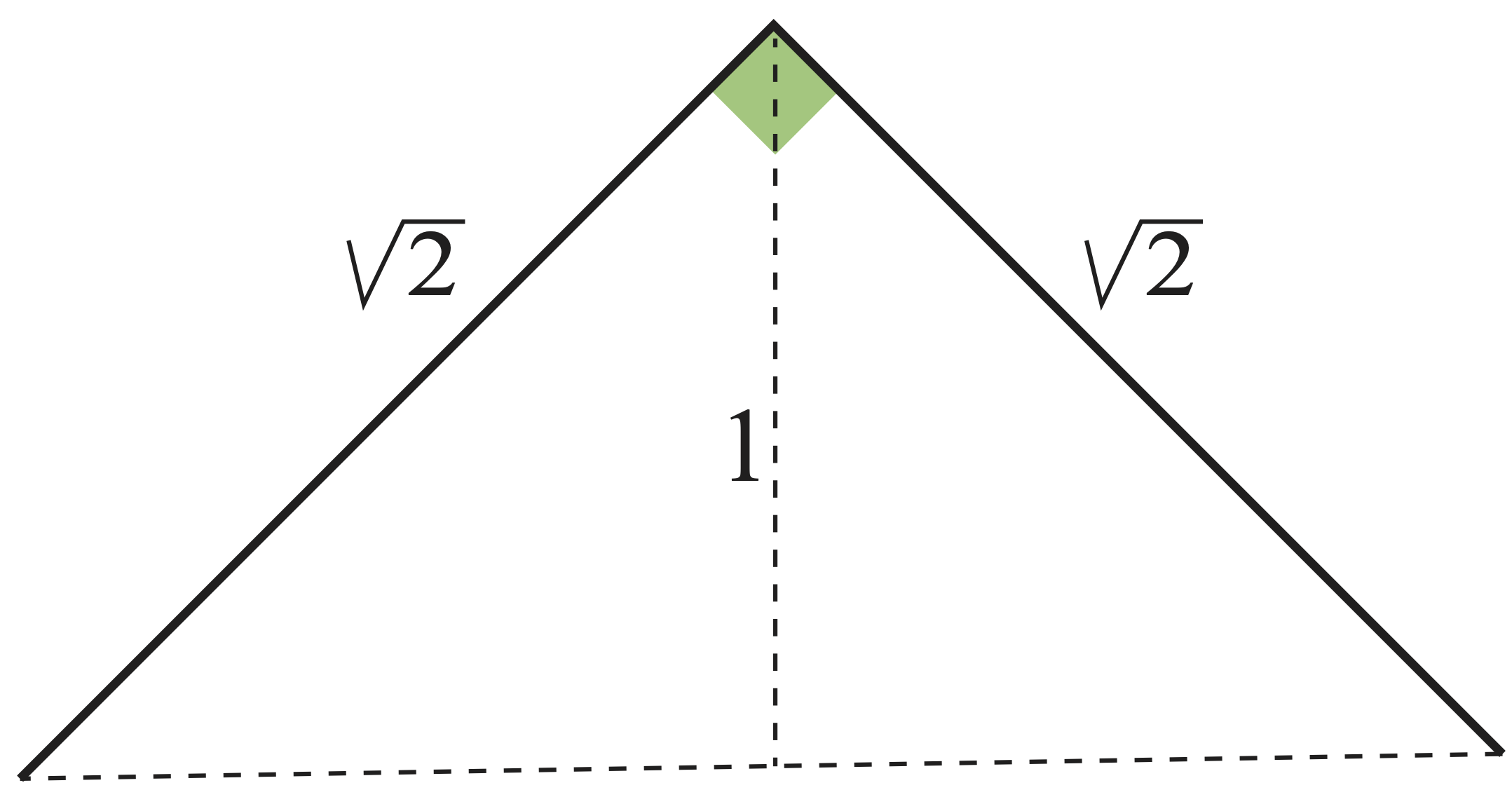 En effet, ces deux segments forment deux côtés adjacents d’un triangle rectangle isocèle dont la plus petite hauteur est 1 (largeur de la forêt).